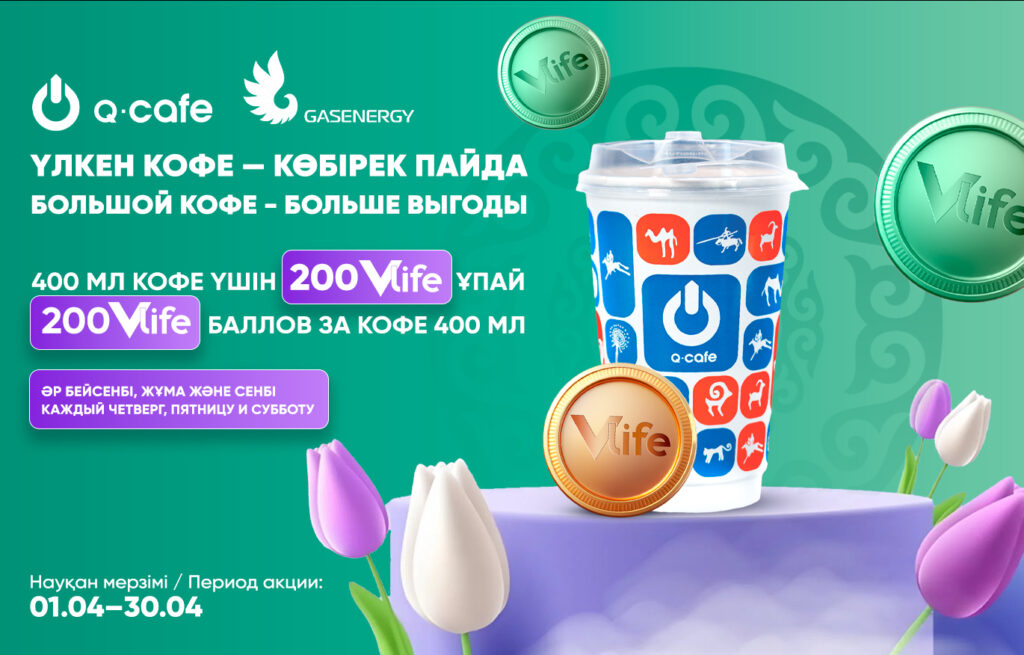 Механика: При покупке любого кофе объемом 400 мл клиент получает 200 баллов на Vlife.